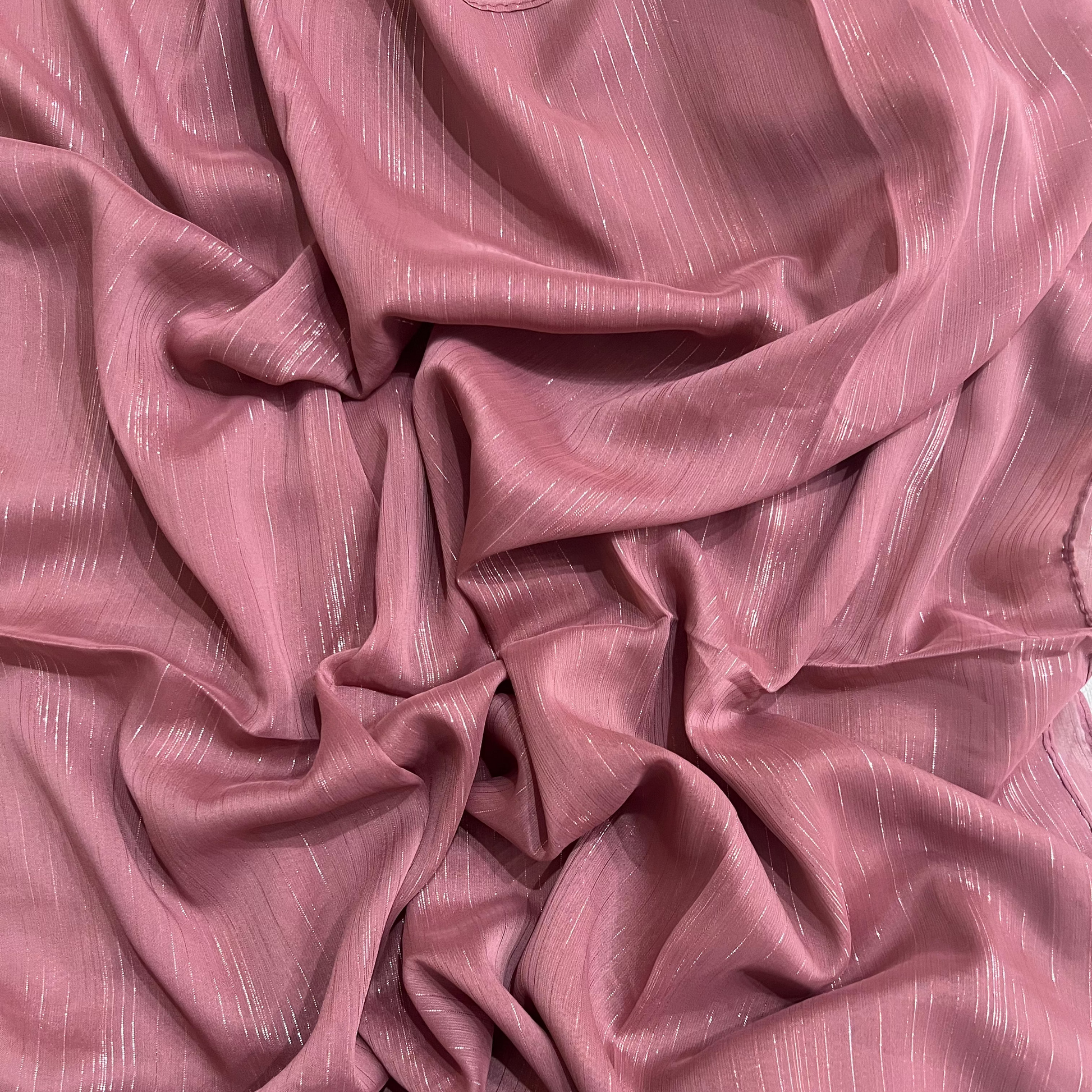 Metallic Chiffon in Rose Pink exudes soft, feminine elegance with a gentle shimmer. Made from premium metallic chiffon, it drapes effortlessly, feeling lightweight, airy, and comfortable on the skin. The delicate rose pink hue adds a romantic and graceful charm — perfect for evening events, festive occasions, or adding a subtle touch of glamour to any outfit.