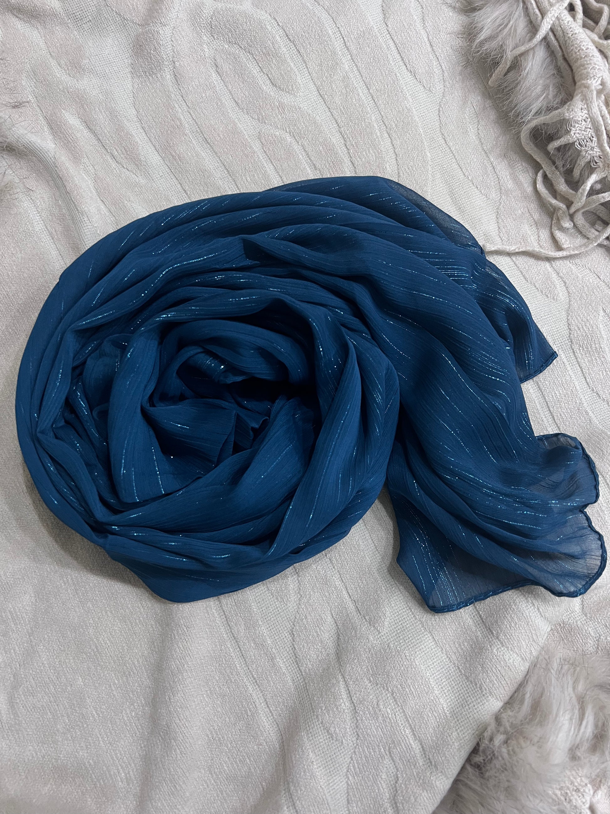 Fabric: Premium metallic chiffon with a soft, shimmering finish.
