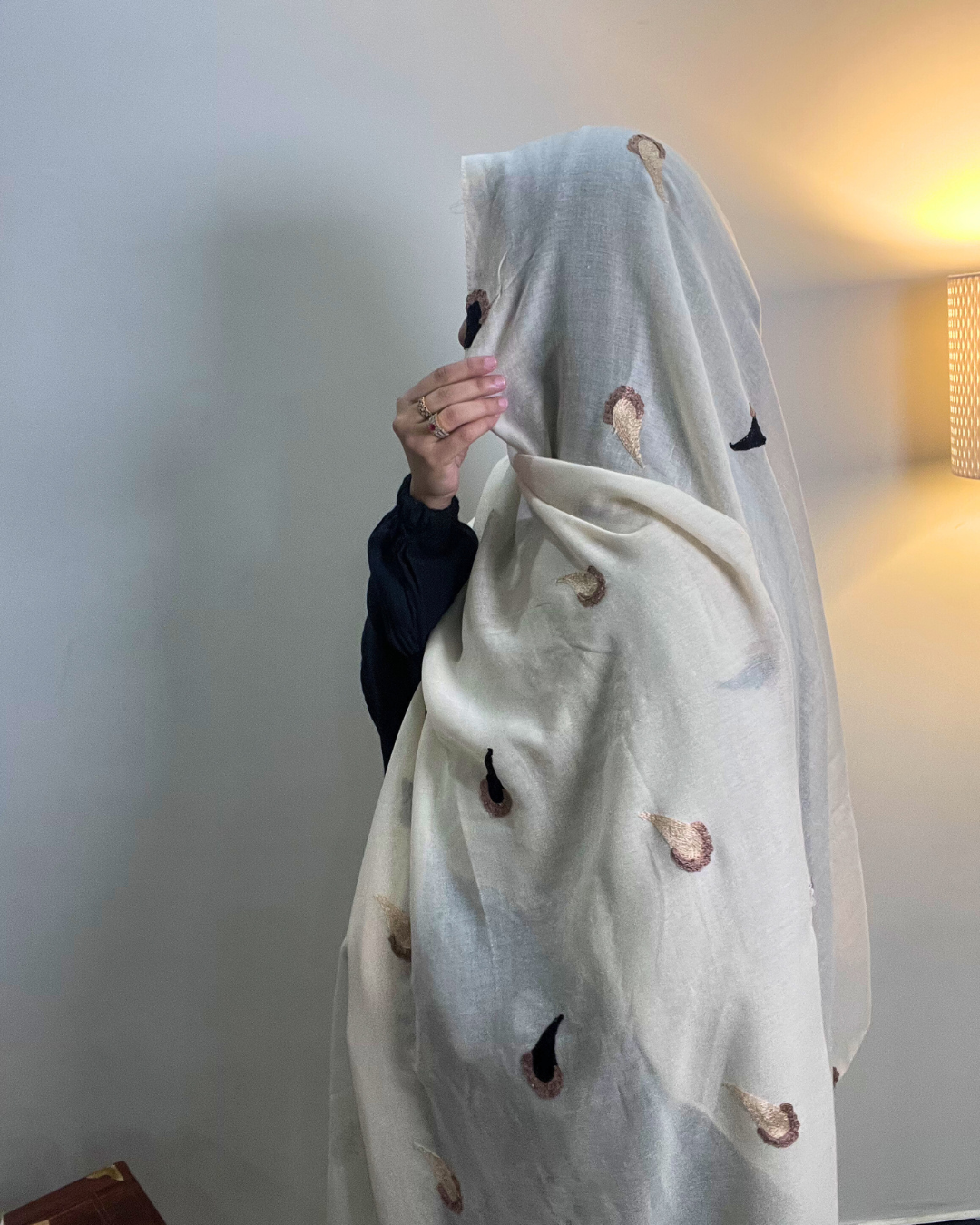 Our Paisley Drop Embroidery Lawn Hijabs are made from the finest, lightweight lawn fabric. The soft, elegant ivory shade offers a timeless and pure aesthetic that seamlessly complements any outfit. These hijabs are adorned with intricate embroidery featuring delicate paisley drop motifs, adding a touch of elegance and beauty to the overall look. They can be worn in all seasons and drape effortlessly.
