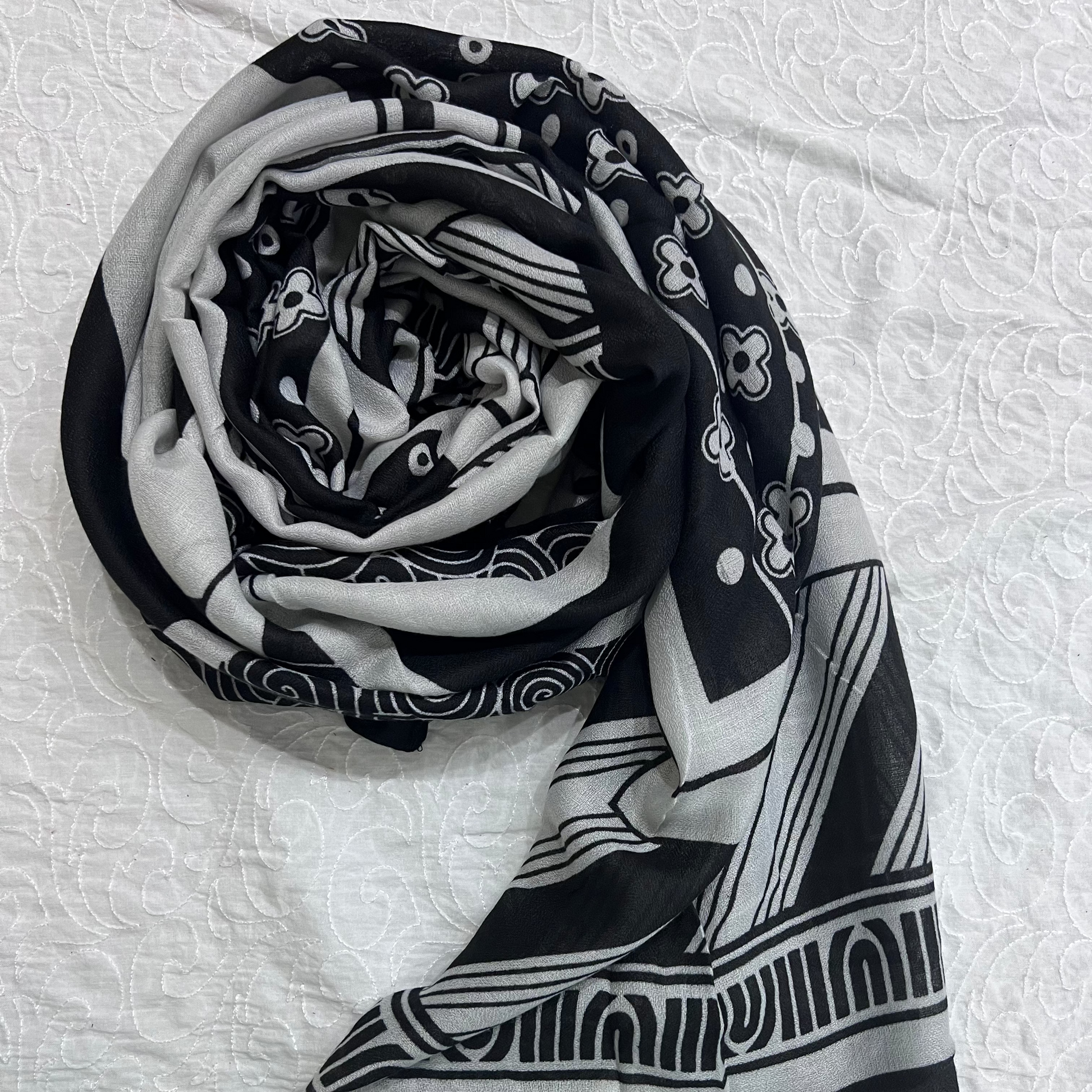 Simplicity with a twist — the Monochrome Maze Hijab, where black and white meet timeless grace.