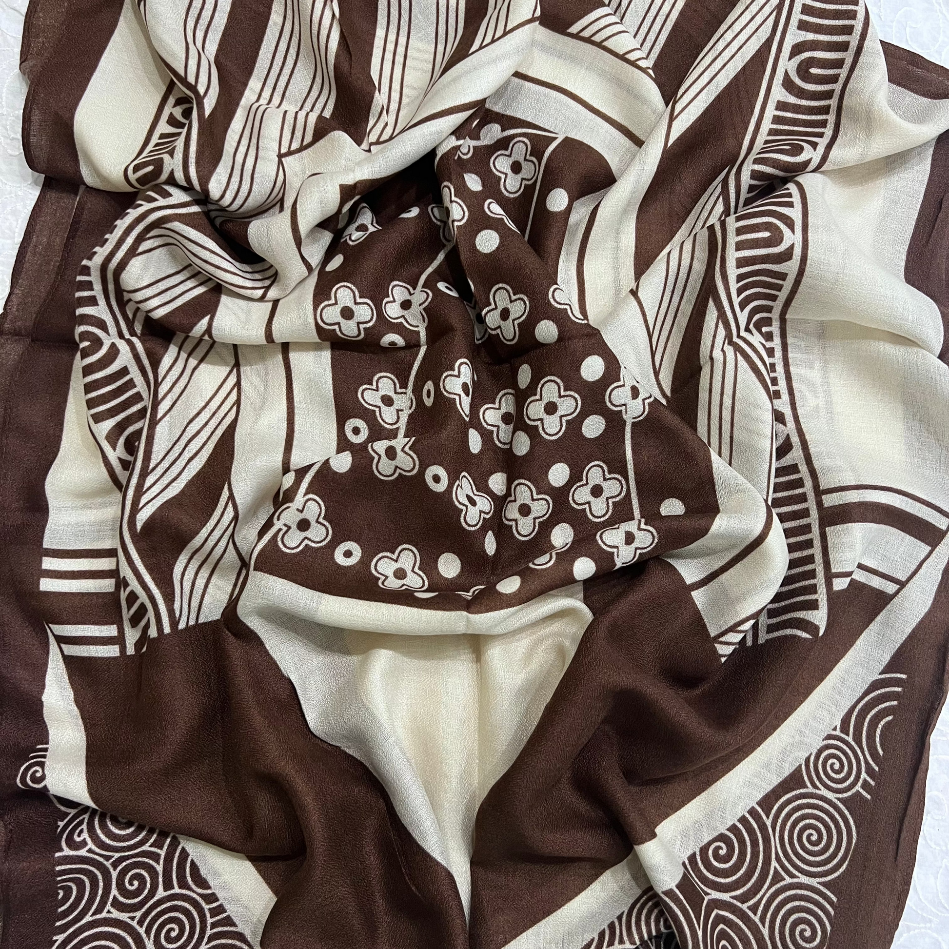 A warm brown and cream geometric print that feels both classic and modern.